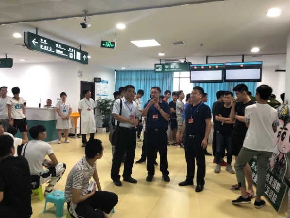 7月24日从化区2019年度征兵工作会议结束后,我院立即启动工作布置。7月25日上午组织全体体检队队员到从化区人武部五楼会议室参加征兵体检动员大会,下午到住院部新建急诊楼健康管理科熟悉场地并进行分组培训,务求做到统一思想、统一标准、统一操作,确保圆满完成2019年征兵体检工作。
