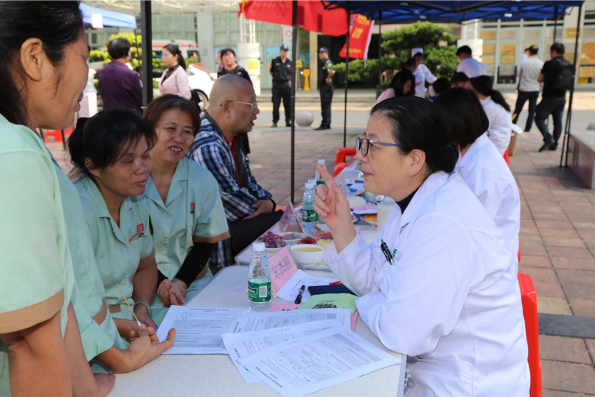本次活动为市民们提供免费测量血糖、血压及糖化血红蛋白,现场由内分泌科、营养科、肾内科等义诊专家提供专业咨询,指导合理饮食及营养搭配,并为市民制定个体化治疗方案。活动中,志愿者们还为大家派发了糖尿病健康知识手册,同时现场有专科护士为有需要的患者及家属讲授胰岛素注射技术,使用胰岛素治疗的患者还可获赠胰岛素注射针头。