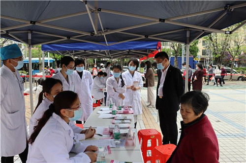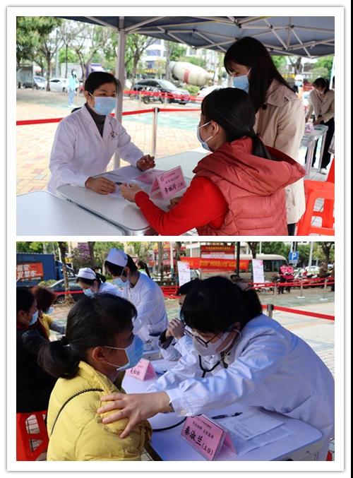 活动当天,为做好疫情防控工作,义诊现场采用围蔽式,凡是参与义诊的群众必须测量体温,佩戴口罩,出示健康码。来自妇科、产科(含产后康复)、乳腺科、康复医学科、老年医学科、内分泌科、预防保健科儿科、心血管内科、脊柱外科、药剂科等十多个科室的专家现场义诊,为群众问诊、开方,提供健康咨询,并免费测量血压、血糖。