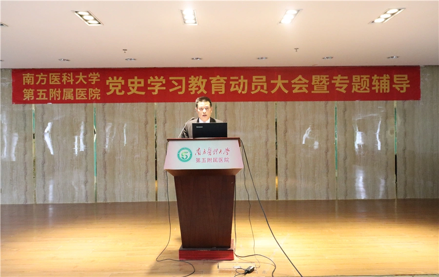 会上,党委书记李绍波作动员讲话。他就如何扎实开展党史学习教育提出了四点意见:一是深刻领会党史学习教育的重大意义。开展党史学习教育是牢记初心使命、推进中华民族伟大复兴历史伟业的必然要求;是坚定信仰信念、在新时代坚持和发展中国特色社会主义的必然要求;是推进党的自我革命、永葆党的生机活力的必然要求;是贯彻落实总书记对广东重要讲话和重要指示批示精神,在全面建设社会主义现代化国家新征程中走在全国前列、创造新的辉煌的必然要求;是贯彻“健康中国2030”、加快建设高水平区域医疗中心的必然要求。二是准确理解党史学习教育的目标任务。学习马克思主义中国化与党的理论创新创造历史,夯实思想之基;学习党善于抓住用好各种历史机遇的历史,胸怀“两个大局”;学习党与人民心连心同呼吸共命运的历史,担当为民之责;学习党不断应对危困攻坚克难的历史,增强斗争之力;学习党在长期奋斗中形成的伟大精神,传承红色之魂;学习党注重团结统一的优良传统,自觉做到“两个维护”。三是严格落实党史学习教育的工作安排。党史学习教育是一项重大政治任务,贯穿2021年全年,注重融入日常、抓在经常,面向全体党员。要扎实开展专题学习;切实加强宣传宣讲;广泛组织专题培训;扎实开展“我为群众办实事”实践活动;认真召开专题组织生活会。四是切实加强党史学习教育的组织领导。各党支部要加强组织领导,精心谋划、扎实推进,立足实际、守正创新,切实把学习教育抓紧抓实、抓出成效。要压实领导责任,加强督促指导,加强政治引领,做好宣传报道。