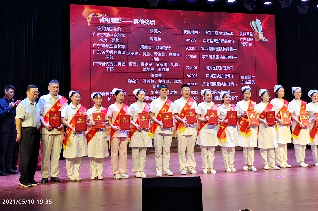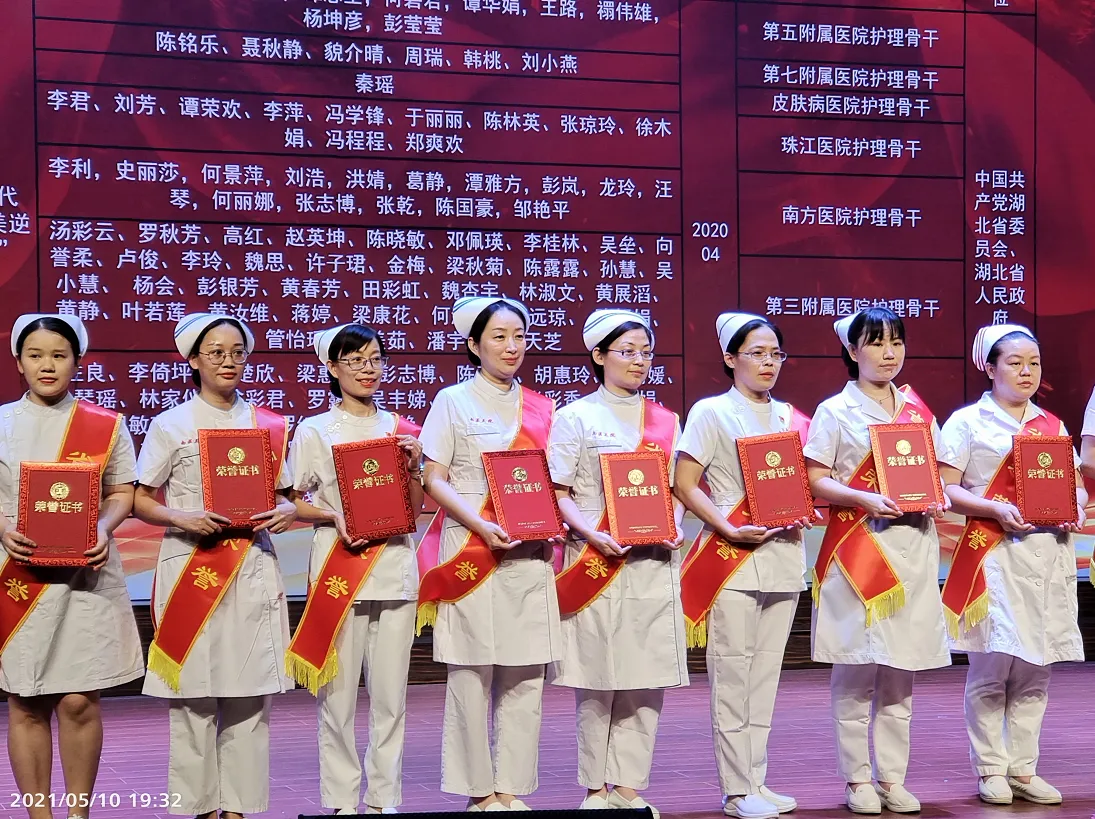 5月10日晚,南方医科大学庆祝第110个国际护士节活动在校本部国际会议厅举行。活动对南方医科大学及各附属医院在2019-2020年度工作中获得省级及国家级荣誉的人员进行表彰。我院翟燕珍等9名援鄂护士分别被评为广东省抗击新冠肺炎疫情先进个人、湖北省委省政府授予新时代“最美逆行者”和广东省优秀团员,再次受到大学表彰,欧阳燕萍被评为南方医科大学优秀临床带教老师。