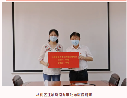 连日来,从化区江埔街道办事处、中国人寿保险股份有限公司、中国农业银行股份有限公司广州从化支行、广州市泓杏堂食品有限公司、江森自控日立万宝压缩机(广州)有限公司、广州隆劲摩托车销售有限公司、纽斯葆广赛(广东)生物科技股份有限公司、广东宏润集团、广州市潜行信息科技有限公司、广州医药股份有限公司、广州厚德肆玖商贸有限公司、广东珠光集团盛轩投资有限公司等纷纷献出爱心,向医院赠送一批牛奶、矿泉水、清凉饮料、蛋白粉、葡萄糖饮料和帐篷等物资,及时为医务人员补充能量,送去清凉。