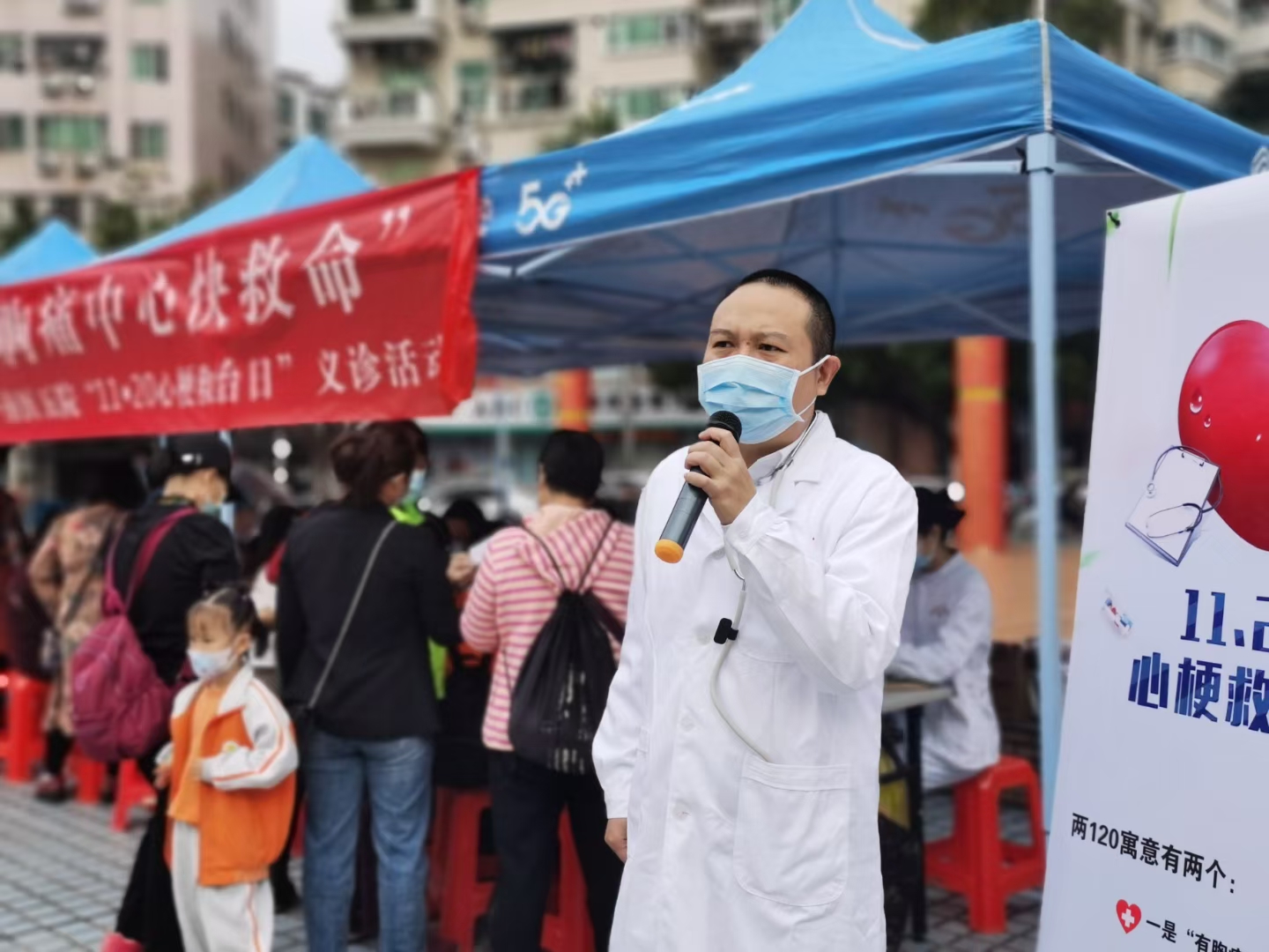 11月20日是全国第八个“心梗救治日”。心血管疾病已经成为世界上威胁人类健康和生命的头号杀手,而急性心肌梗死是心脏性猝死的首位死亡原因。为提高公众对心梗严重性和防治重要性的认识,普及急性心肌梗死的规范化救治流程,当天,南方医科大学第五附属医院心内二区联合急诊科在从化区街口街新城广场开展宣传活动。