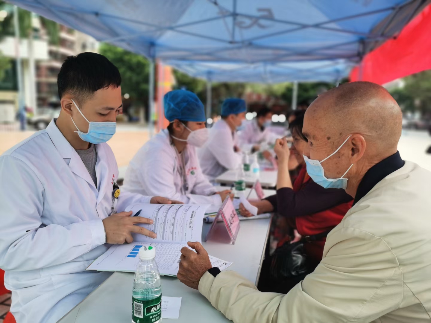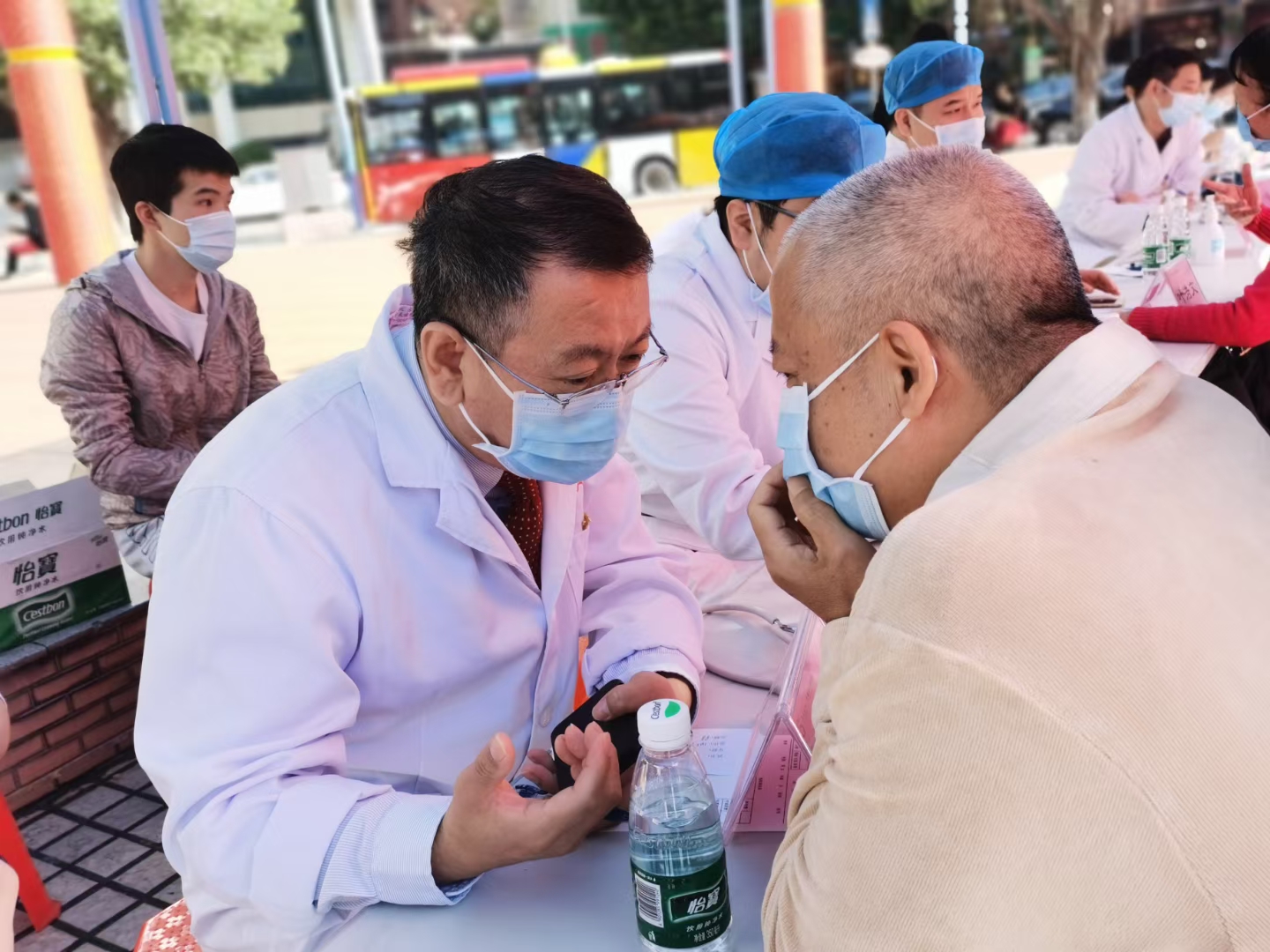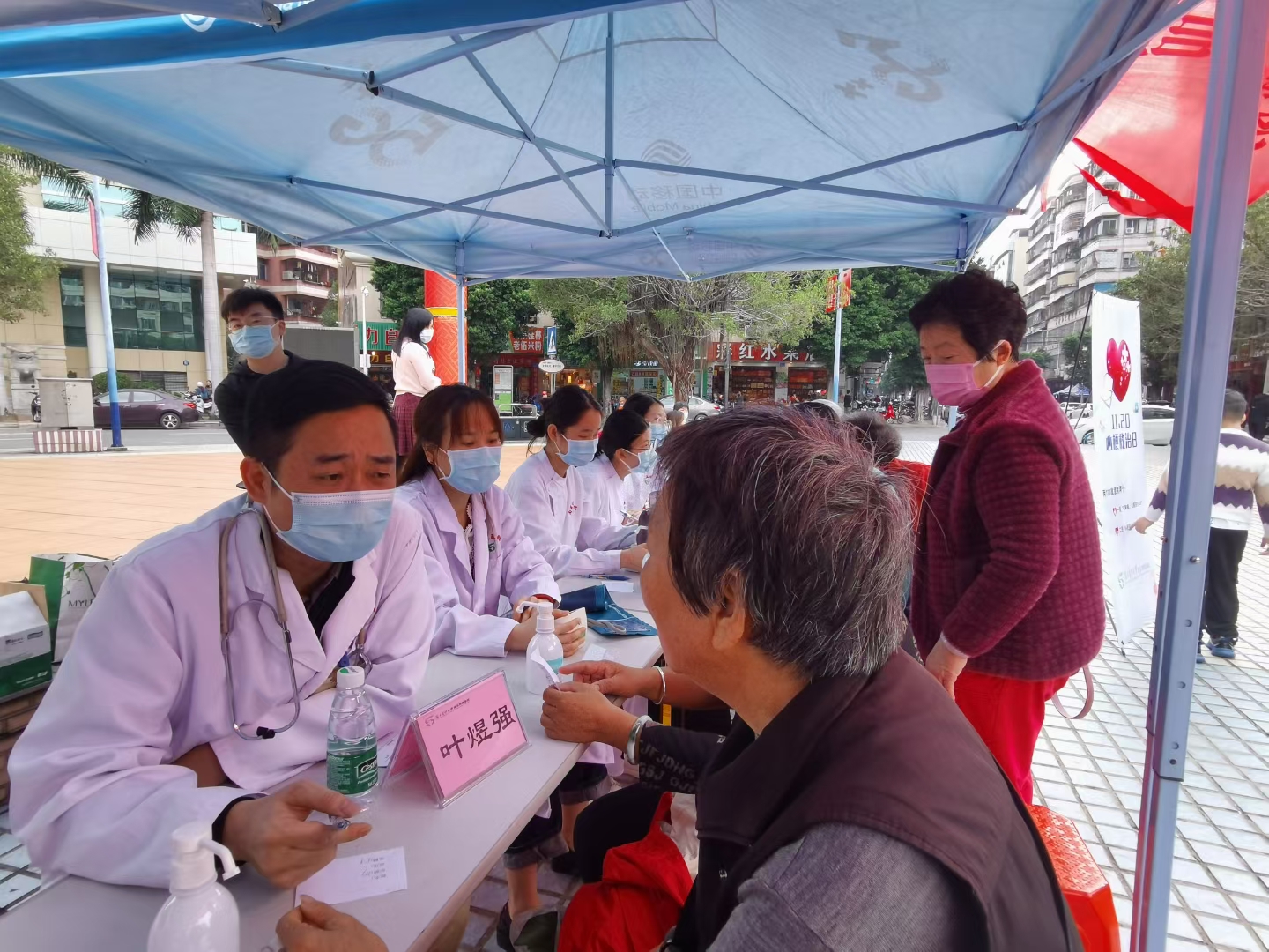 活动现场,医务人员为市民进行义诊、心肺复苏演练、免费测血压、免费测血糖、免费发送药品、疾病知识宣教、心脏急救科普宣传,现场群众积极响应,男女老少纷纷参与冠心病防治科普教育。