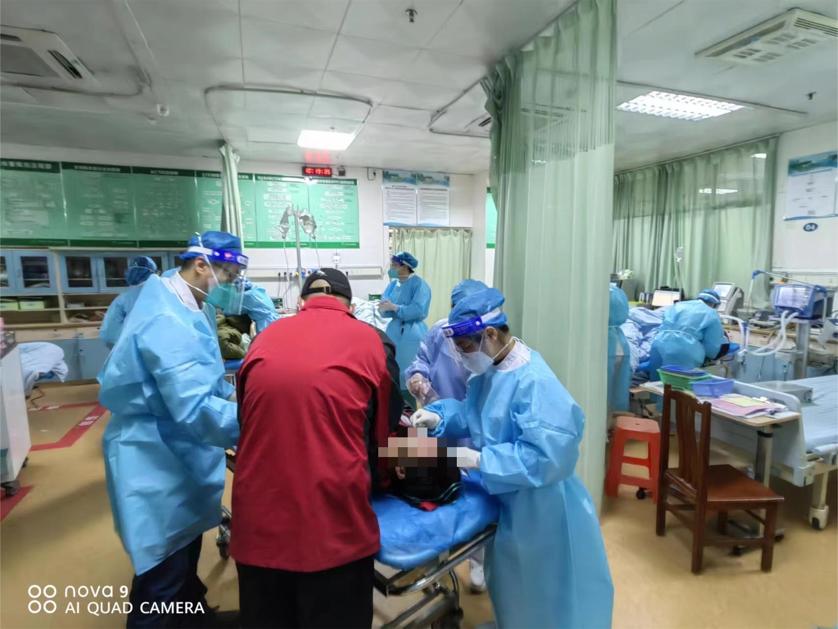 急诊科张蔚、杨冬随叫随到,只为确保每一例急危重症患者都能得到及时有效的治疗。常常是盒饭放凉甚至糊成一坨了都顾不上吃一口,为了减少上卫生间的次数,更好地节约时间治疗更多的患者,他们更是不敢多喝一口水。