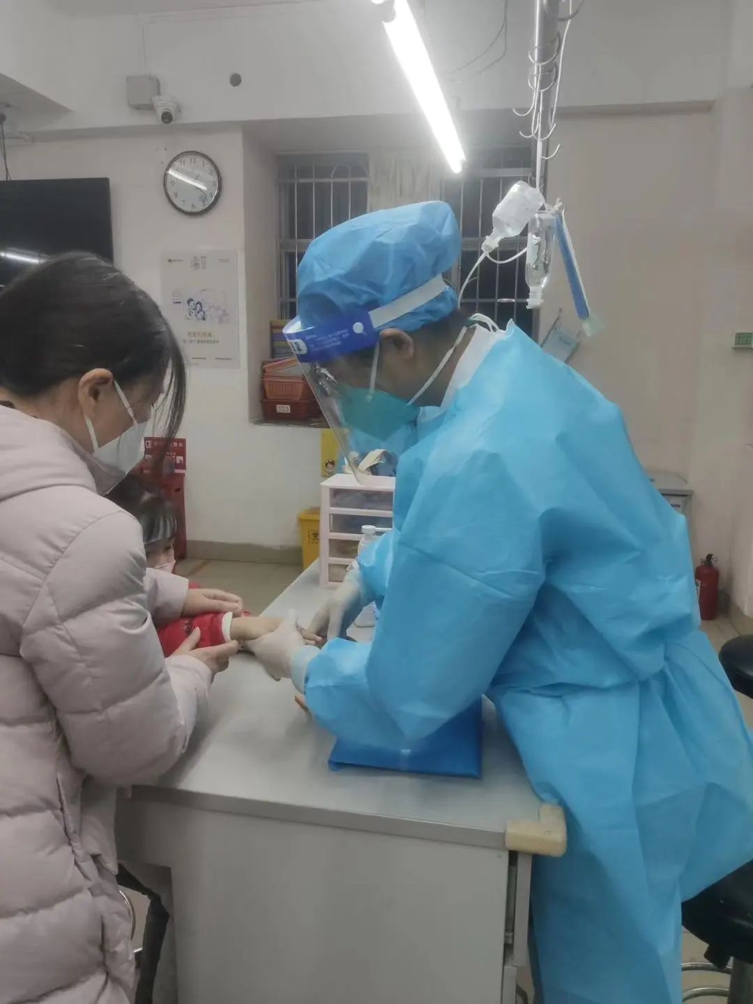 候诊区里的长排座椅坐满了抱着孩子的家长。抽搐、高烧、惊厥……孩子们的症状让家长们心急如焚。沈玉才主任与巢伟聪、黄远途、邓忠红、李昊、杨景斐等医生都拖着沉重的身体,做好个人防护顶硬上,坚持为患者服务,仔细给患儿做检查,下医嘱。医生李基还特意住在医院,身体稍微一好转,就主动申请值守夜班。“我们当中很多也是为人父母,理解家长那种着急和无助,唯有全力做好患儿的诊疗。”