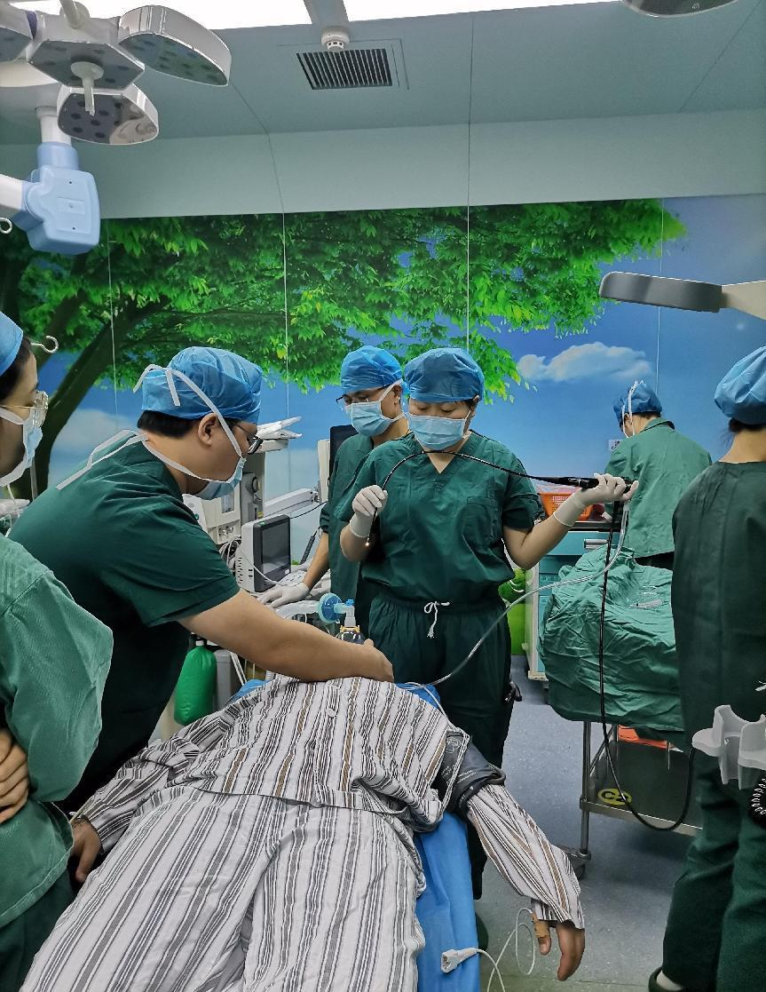 气道异物属于危急症,如不及时取出,可能危及患儿生命。遂请呼吸与危重症医学科医生协助行纤维支气管镜检查,患儿在气管镜室使用超细支气管镜可见右主气管内异物,确诊有异物,然局麻下患儿配合欠佳,遂立马联系麻醉科医生评估患儿情况,拟行全麻下经纤维支气管镜下支气管异物取出术。最后,经过医院呼吸与危重症医学科、麻醉科、儿童重症医学科通力合作,由呼吸与危重症医学科房树娟主治医生成功将堵塞在右主支气管的笔套取出,患儿术后情况良好,无不适。