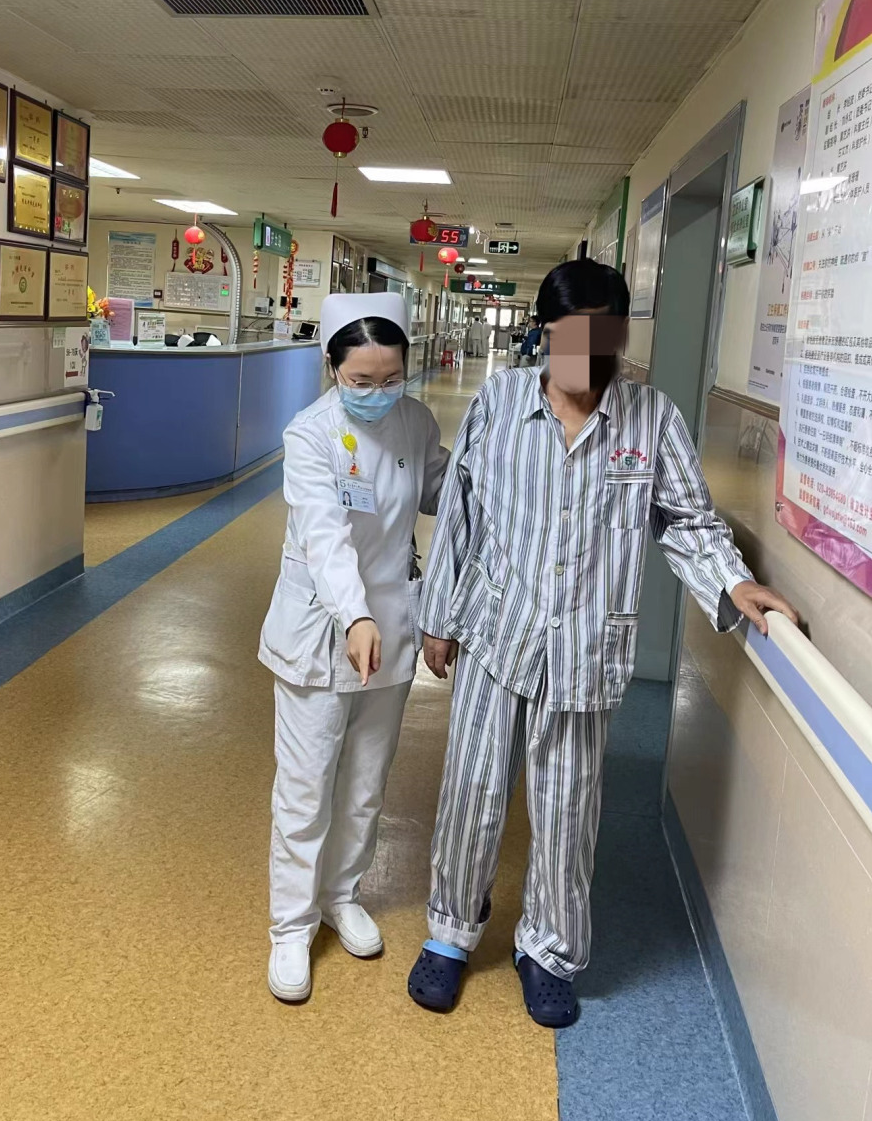 经过积极治疗,患者病情逐渐好转。通过交流,患者能勉强回忆起自己的名字,后来大家都称呼他为韦叔。韦叔告诉大家,他老家远在广西,其他事情暂时记不起来了。住院期间恰逢过年,为使韦叔减少孤独感,替他解闷,护士们还从家里带来热腾腾的饭菜,向他讲述过年期间发生的趣事,韦叔脸上露出久违的笑容。因韦叔右侧肢体功能尚未完全恢复,又无人照料,科内医务人员共同承担起照顾韦叔的重任。除帮助韦叔进行日常擦洗抹身外,科室还组织捐款为韦叔购买日常生活用品、衣物,帮助订餐等等,韦叔深受感动。为帮助韦叔更快恢复肢体功能,护士常常陪着韦叔进行康复锻炼。经过近两个月的悉心照顾,韦叔肢体功能较前改善明显,可以自己刷牙、洗脸、吃饭。他竖起大拇指,开心地向医护人员点赞,感谢所有医护人员的关怀和付出!
