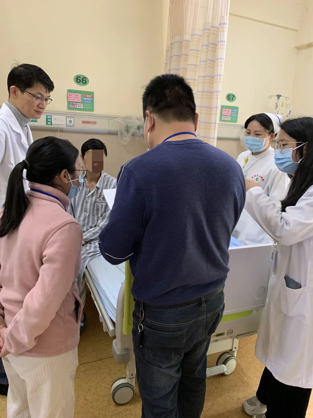 2023年1月17日上午8点,从化区太平镇中心卫生院接到120指挥中心电话,指示路人在路边发现一名跌倒在地的中年男性,要迅速派出救护车前往接诊。接诊时卫生院医务人员发现患者存在“右侧肢体抽搐、肢体无力、言语不清”等问题,情况不容乐观!卫生院医务人员对患者进行紧急处理后,立即将患者送至南医五院。到院时,患者没有任何随身物品,也无法联系到家属,急诊科张尉医生接诊后马上上报科室康新主任及医务科,即刻为患者开通绿色通道。急查头颅CT提示左侧脑干软化灶,血糖21.4mmol/L,诊断为急性脑梗死。立即收住神经内科,时间就是生命,主管医生邱家琦对患者进行详细检查,结合报告结果马上对患者进行抢救,予以尿激酶溶栓治疗后,患者转危为安。