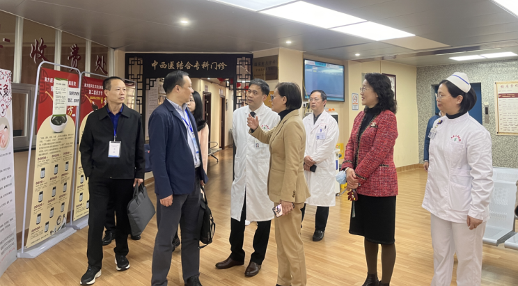 近日,广东省中西医结合医院副院长田宁一行3人莅临我院开展中医药工作示范区创建综合医院现场评审,从化区卫建局副局长龙晓梅、医政科科长孙志滔,南医五院副院长徐晓武及医院相关科室负责人陪同检查。