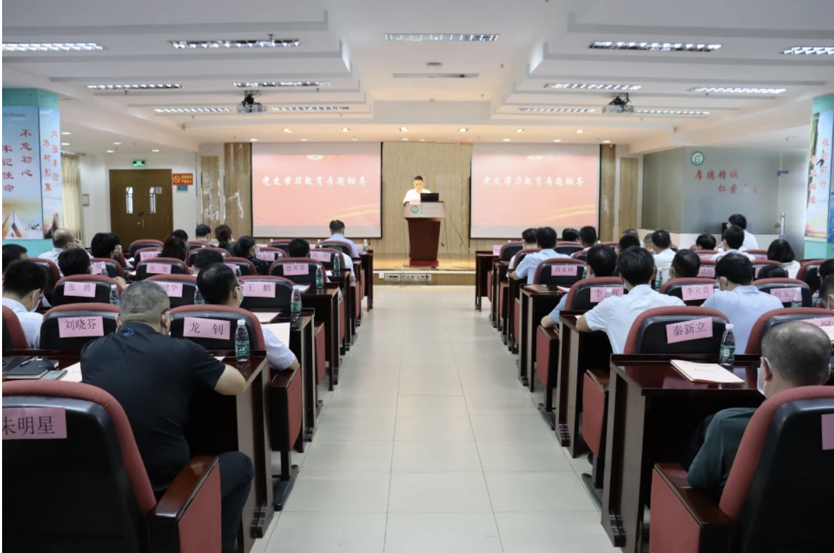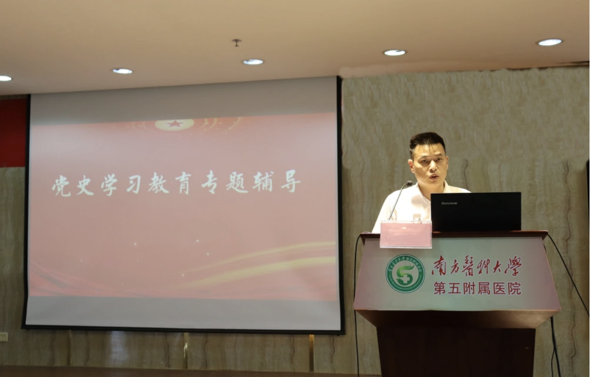 会议邀请了南方医科大学马克思主义学院赵军祥教授作专题辅导。赵教授围绕“没有共产党就没有新中国——中国共产党新民主主义革命史”的主题,从“将革命进行到底——中国人站起来”、“实现马克思主义中国化——毛泽东思想成为党的指导思想”、“强化思想建党——永葆党的先进性和纯洁性”以及“学习党史——学什么”四个方面进行了深入浅出的阐述。报告紧紧围绕习近平总书记关于党史的重要论述,立足学史明理、学史增信、学史崇德、学史力行,系统回顾新民主主义革命时期的光辉历史和宝贵经验。