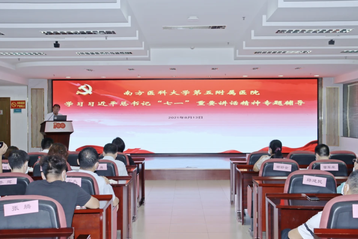 8月13日下午,南医五院召开学习习近平总书记“七一”重要讲话精神专题辅导会。医院领导班子成员、各党支部书记、支部委员、科室主任、护士长及支部党员代表等参加会议。会议由医院党委书记李绍波主持。