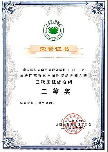 近日,广东省第三届医院品管圈大赛圆满落幕。我院选送的3个作品参加比赛全部获奖,获得一个二等奖,两个三等奖。