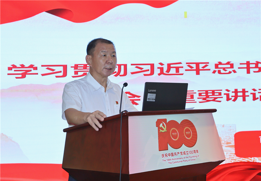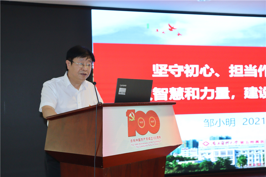 邹小明院长以《坚守初心、担当作为,从百年党史汲取智慧和力量,推进医院高质量发展》为题谈学习体会,并对医院上半年工作进行了总结,对下半年工作进行了部署。今年上半年,医院工作完成情况及取得的成效为:全面加强党的建设和党的全面领导,慎终如始抓好疫情防控,高质量完成“十四五”规划编撰,大力推进人才引培工作,着力推进学科建设,医疗质量管理全面提升,医疗服务能力进一步提升,科研教学再上新台阶,对外辐射影响力不断加强,治理能力稳步提升,综合保障能力持续增强,大力加强医院文化建设。