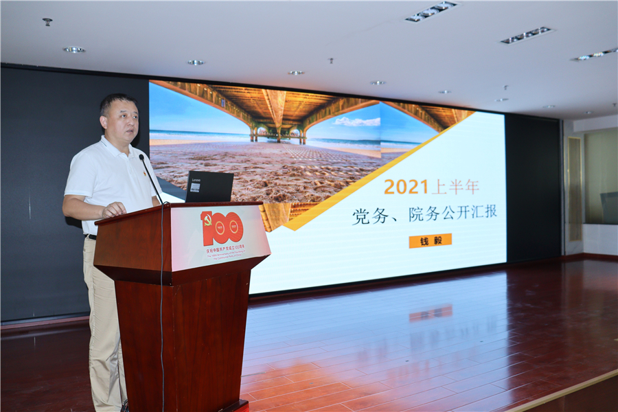 钱毅副院长作党务院务公开报告。他围绕人员情况、医院经营及预算执行情况、“三重一大”事项、“三公”经费及行政经费使用情况、业务管理情况、2021年扶贫济困捐款情况、上级下拨党费使用情况等方面对有关党务院务工作进行公开。