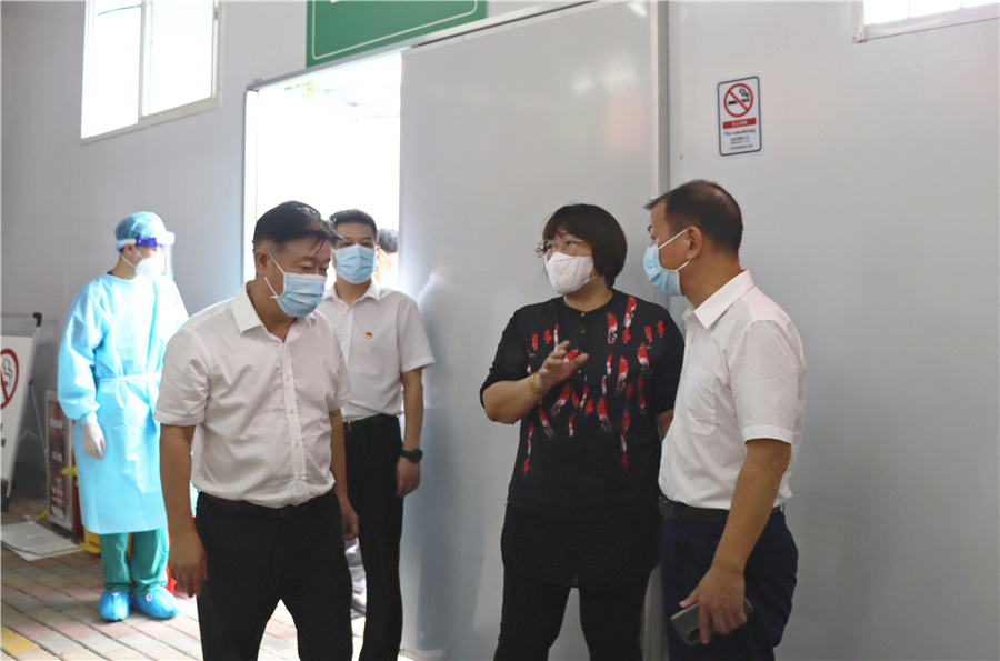 朱翼虹局长一行在医院领导的陪同下,先后察看了核酸检测点、放疗与核医学楼等地,并详细了解医院疫情防控工作、学科建设、人才编制、医疗设备、床位规模等情况。