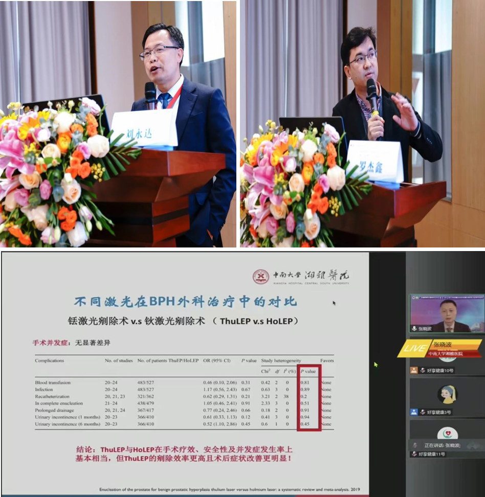 学术会特邀王龙、谢群、肖恒军、雷鸣主持,由唐松林、曾鹏 、徐庆春进行讨论,中南大学湘雅医院张晓波的授课题目《BPH激光治疗现状与展望》、广州医科大学附属第一医院刘永达的授课题目《如何把前列腺剜除术做成日间手术》、东莞市人民医院罗杰鑫的授课题目《大体积前列腺钬激光精准解剖性剜除术》。