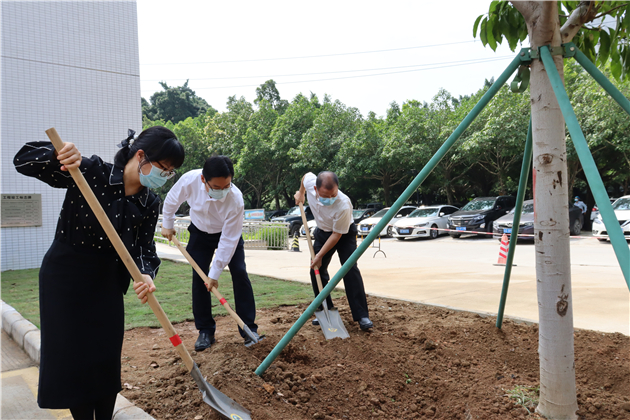 随后,赵龙一行与抗疫医护人员一起在南医五院参与植树活动。