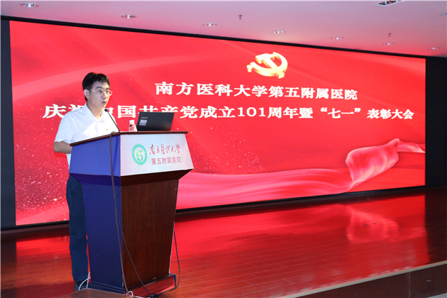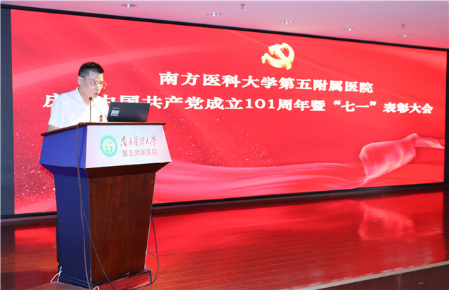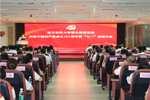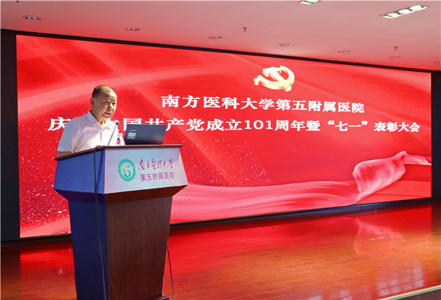 为庆祝中国共产党成立101周年,树立典型、表彰先进,激励广大党员为医院建成高水平区域医疗中心做出更大贡献,6月30日下午,南方医科大学第五附属医院举行庆祝中国共产党成立101周年暨“七一”表彰大会。医院党委班子成员,各党支部书记、支部委员,科室中层干部和党员代表等参加了大会。