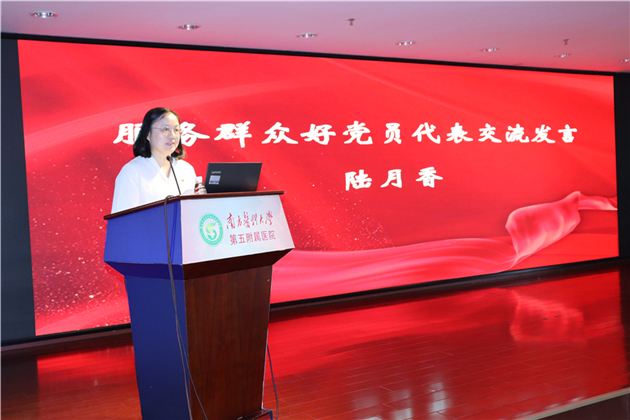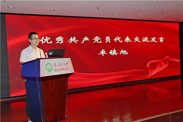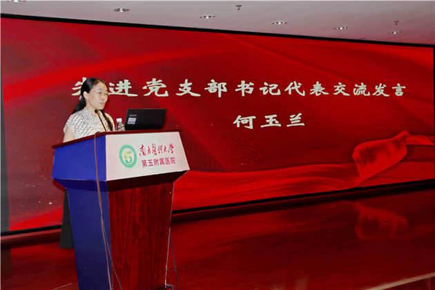 先进党支部书记代表何玉兰、服务群众好党员代表陆月香、优秀共产党员代表卓镇旭分别上台发言。他们表示,作为一名党员和一名医务工作者,将坚定理想信念,永葆党员本色,立足岗位,模范带头,从一点一滴的小事做起,全心全意为人民服务。