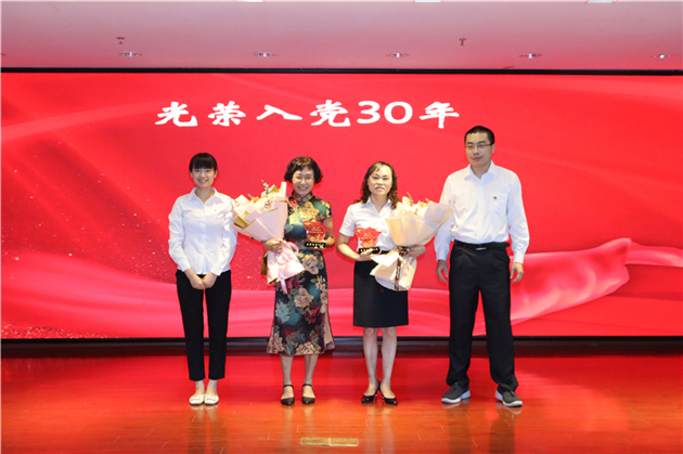 医院领导为受表彰的先进集体和优秀个人颁发了奖牌和证书。新入党党员为医院入党满30年的党员献上鲜花,感谢他们为医院做的贡献,希望他们继续发挥传帮带作用。