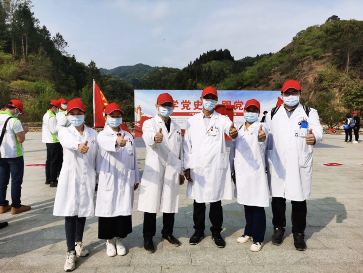 为深入开展党史学习教育,践行雷锋精神,3月11日,由广州市总工会、团市委、市妇联、市科协联合主办的“学党史•跟党走——广州市群团组织寻找羊城红色印记系列活动”在从化区吕田镇莲麻村党章学堂、黄沙坑革命旧址纪念馆举行。南方医科大学第五附属医院6名医护志愿者代表参加了活动,重温党的光辉历程、为老党员送医送药。