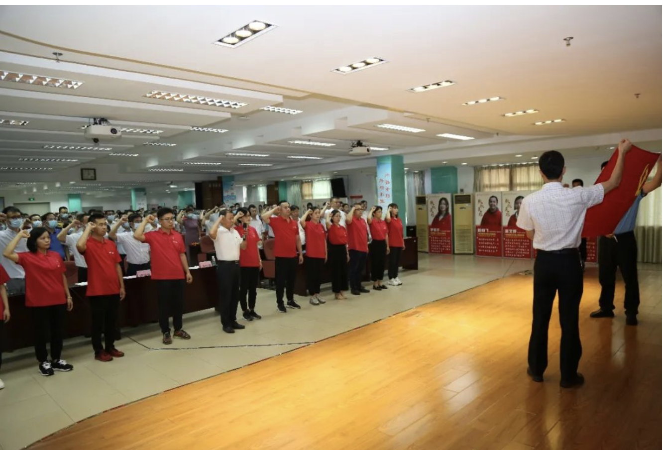 大会在庄严肃穆的国歌声中拉开了序幕。党委书记李绍波带领全体参会人员重温了入党誓词。