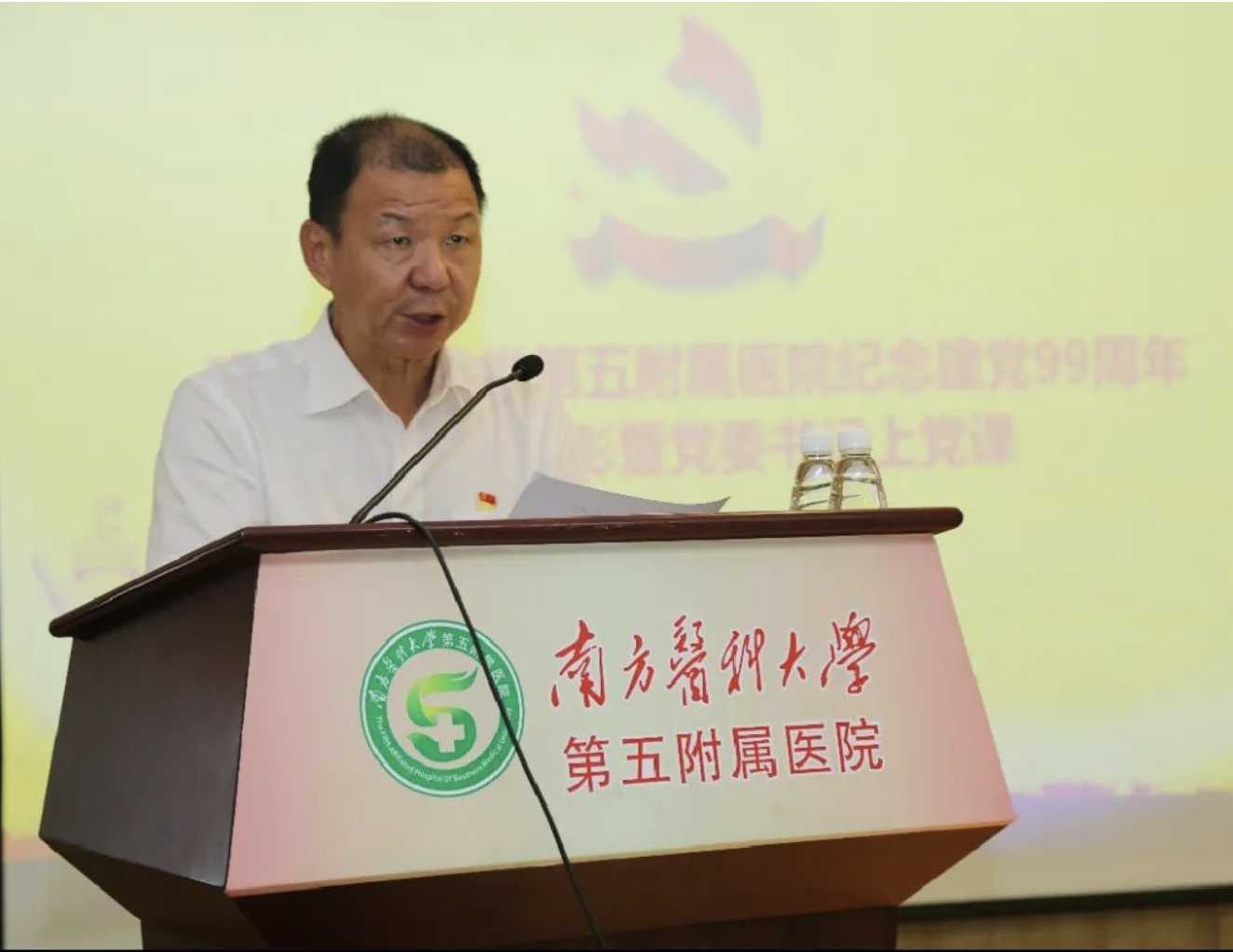 为纪念中国共产党建党99周年,进一步激励广大党员不忘光辉历史,牢记初心使命,发扬革命精神,以永不懈怠的精神状态和一往无前的奋斗姿态,凝心聚力,开拓进取,7月1日下午,南方医科大学第五附属医院召开纪念建党99周年暨“七一”表彰大会。全体院领导,各党支部书记、委员,全体党员、入党积极分子等300多人参加了大会。会议由医院党委副书记孙健主持。