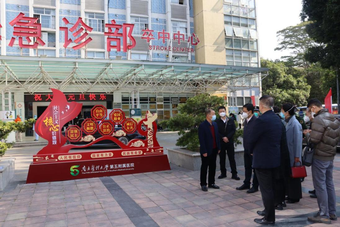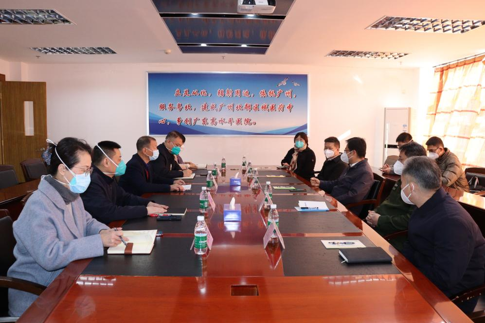 12月31日上午,从化区委副书记、区长赵龙,区委常委、武装部政委艾承豪,副区长、公安局局长陈航率区府办、卫健局、公安局等有关部门到南医五院调研新冠医疗救治工作。医院党委书记李绍波陪同实地考察了医院急诊科、发热门诊等临床一线,并代表医院作工作汇报,党委副书记孙健、副院长钱毅,医教部、护理部负责人参加。