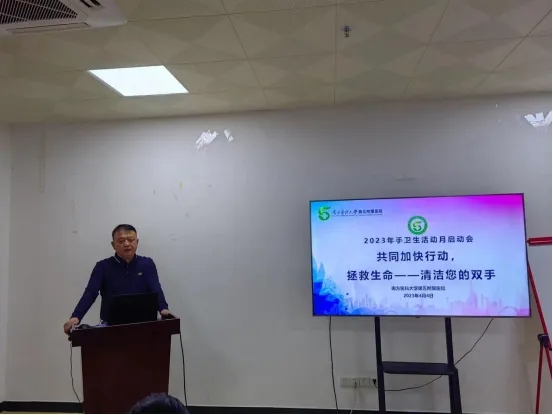 钱毅副院长主持手卫生月活动启动会指出:手卫生月活动时间有限,但规范执行手卫生的行为无限制的。开展手卫生月活动是为了进一步强化医务人员自我防护意识,培养良好的手卫生习惯,强化感控理念,营造感控文化,更好地为前来就诊的广大群众服务、创造更安全的就医条件。