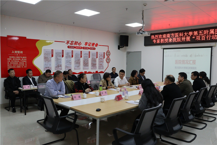 10日下午,徐晓武一行在仁化县妇幼保健院召开“双百行动”工作交流座谈会,“双百行动”驻仁化县服务队队长孙俊川、仁化县妇幼保健院领导及相关科室主任参加会议。座谈双方详细介绍了医院专科建设、服务能力建设、人才培养、医院管理等情况,双方医护人员进行了深入的业务交流。按照南方医科大学对“双百行动”工作的整体要求,南医五院专家组团“把脉问诊”,摸清帮扶需求,细化帮扶举措,探讨多样化合作模式,努力为县域医疗服务能力提升贡献“南五力量”。
