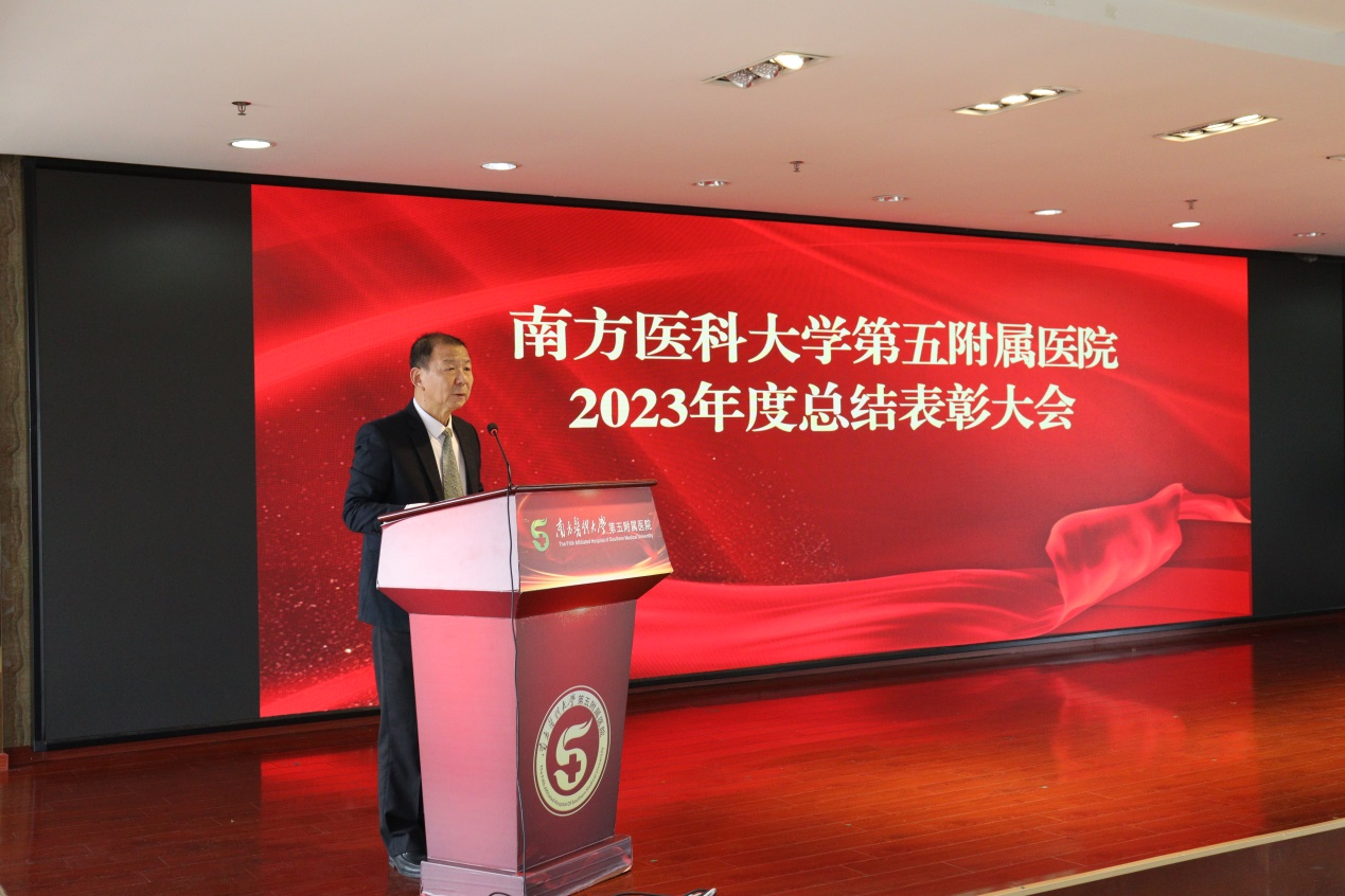 李绍波代表医院党委向日夜奋战的同志们表示崇高的敬意和衷心的感谢,也向支持医院发展的职工家属表示真诚的谢意。他在讲话中表示,2024年是实现“十四五”规划目标任务的关键一年,也是医院发展建设关键的一年,全院教职工要凝心聚力、踔厉奋发,进一步夯实“技术建设年”工作,开展好“三甲复审”主题年工作,重点抓好党的建设、医教研发展、干部队伍、公立医院绩效考核、“三甲”复审等24项重点工作。医院党委始终坚持医院发展成果与全体员工幸福感获得感紧密联系,全体教职工要认真贯彻落实党的二十大精神,按照医院重点任务目标,不断提升医疗服务能力和水平,建设过硬的医疗团队,以三甲复审为契机,谱写医院高质量发展新篇章。