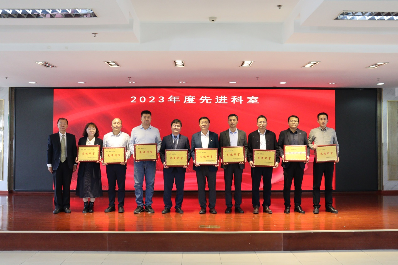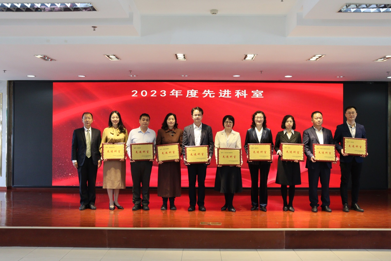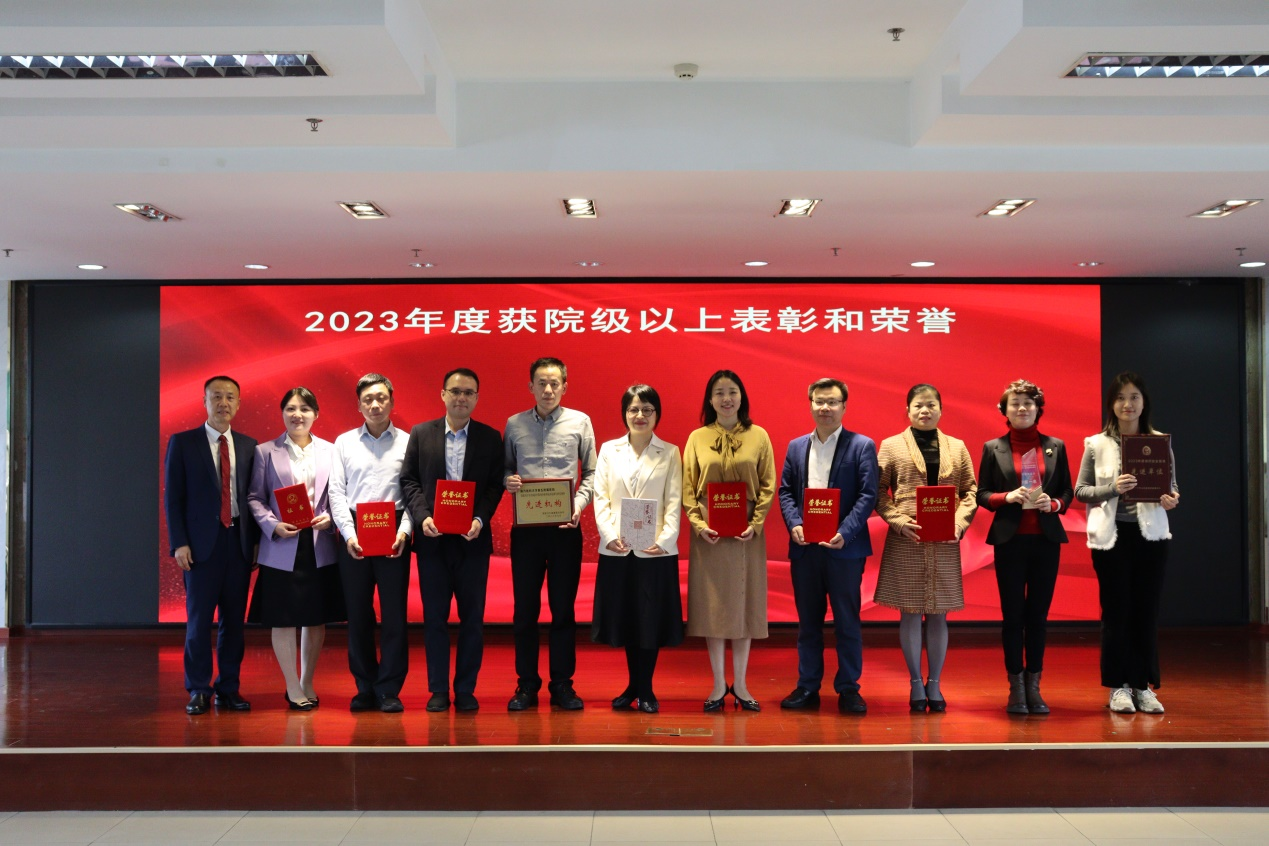 纪委书记邓建希、党委副书记孙健、副院长徐晓武、副院长曾方银等院领导分别宣读了2023年度表彰通报,全体院领导为获奖代表颁发奖牌和证书。