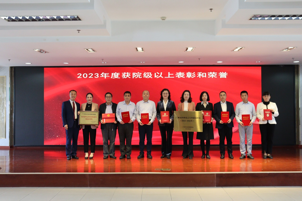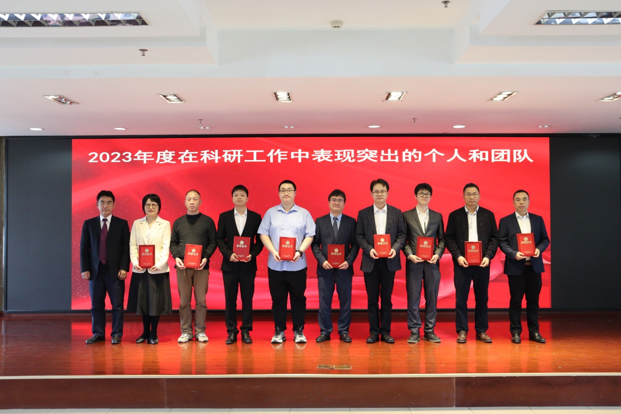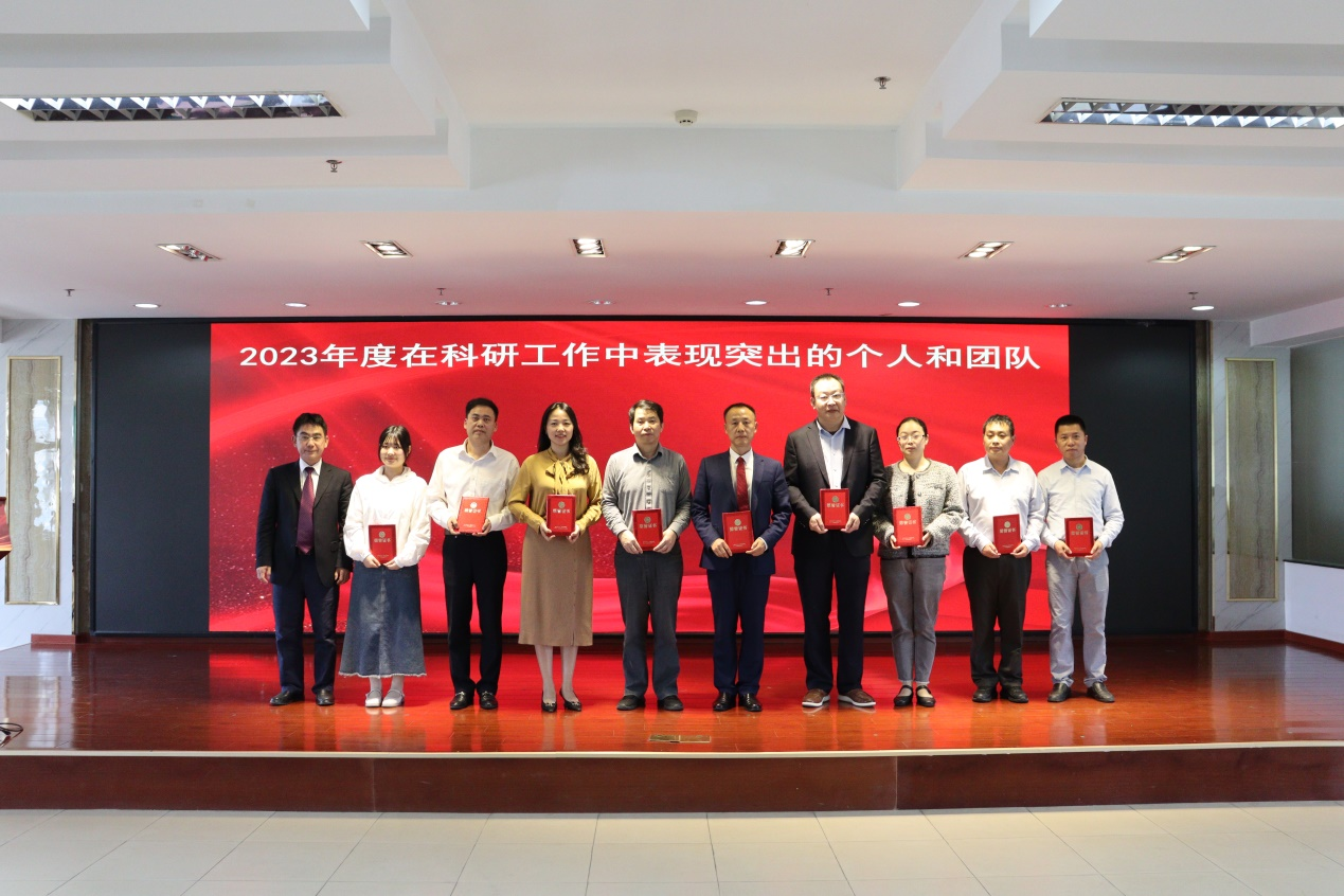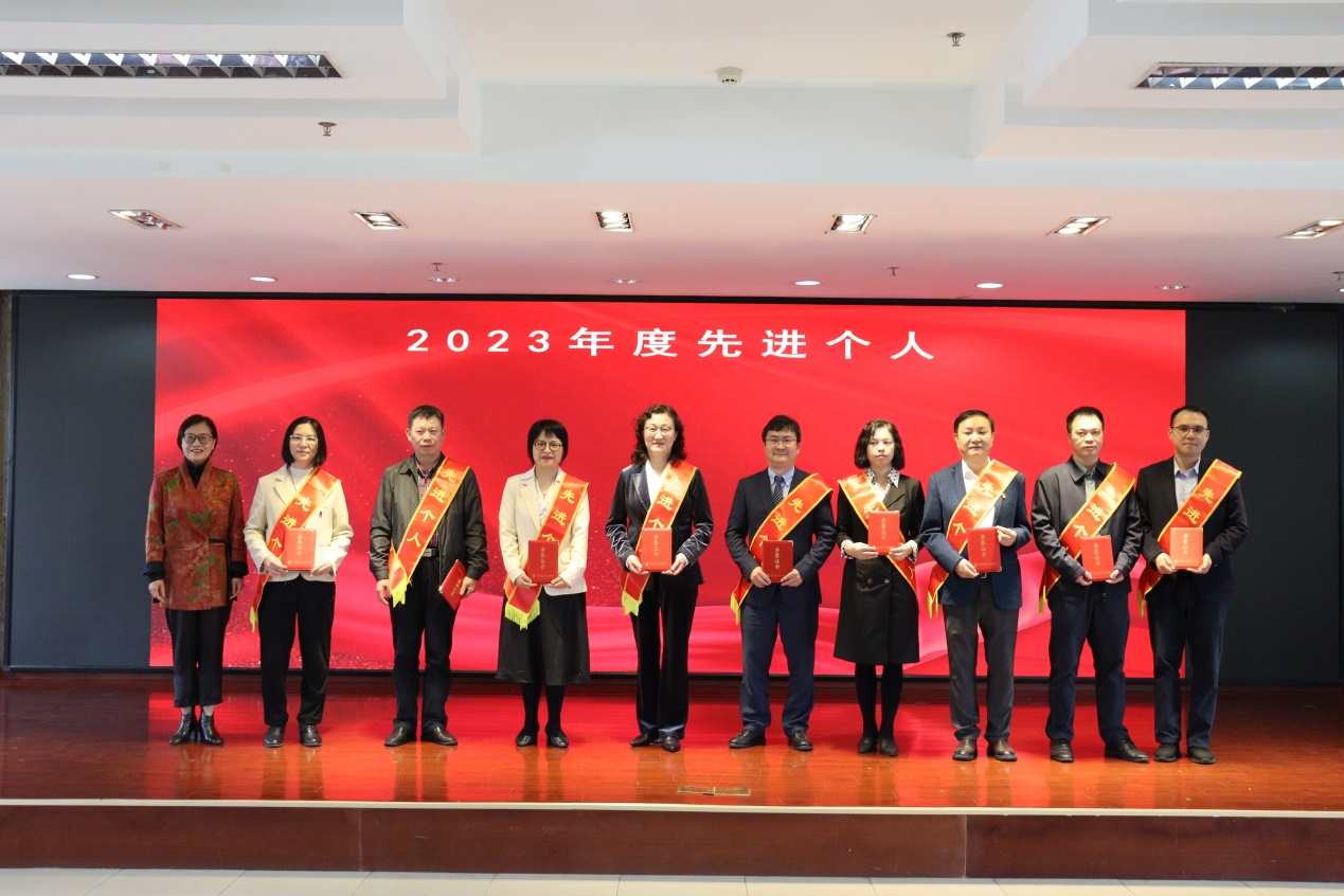 纪委书记邓建希、党委副书记孙健、副院长徐晓武、副院长曾方银等院领导分别宣读了2023年度表彰通报,全体院领导为获奖代表颁发奖牌和证书。