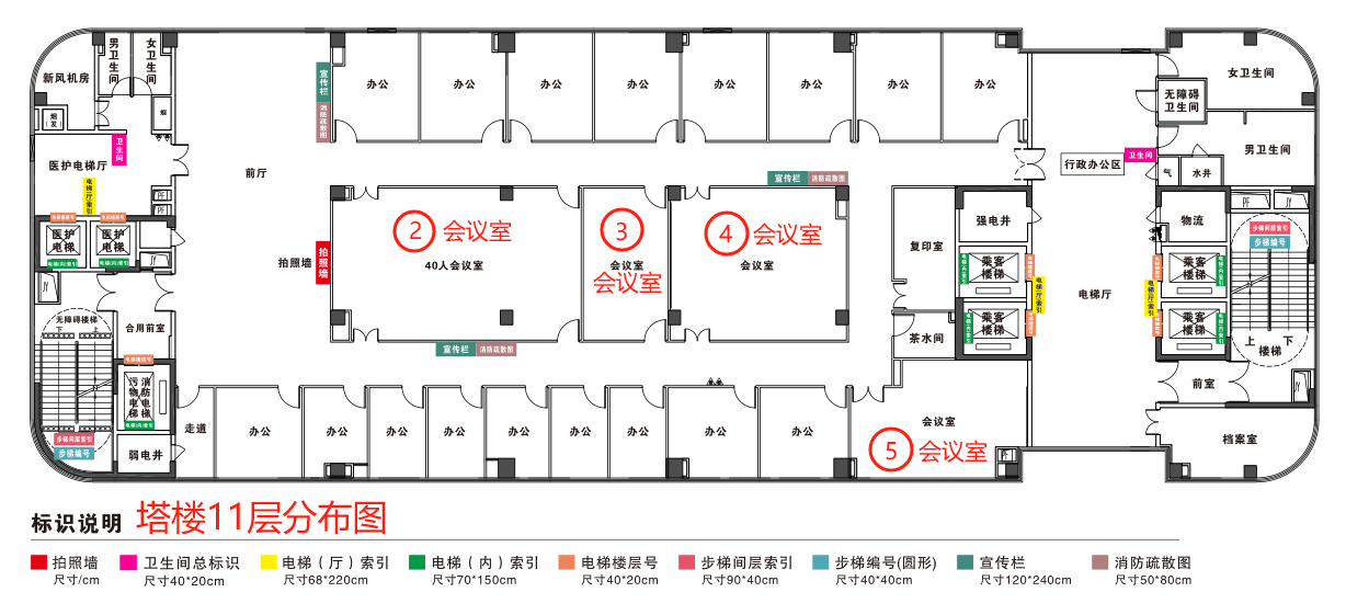 (二)塔楼十一楼四个会议室(编号②至⑤)