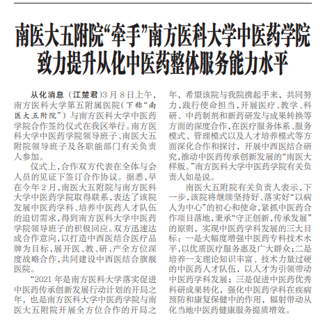 《今日从化》:南医大五附院“牵手”南方医科大学中医院学院,致力提升从化中医药整体服务能力水平