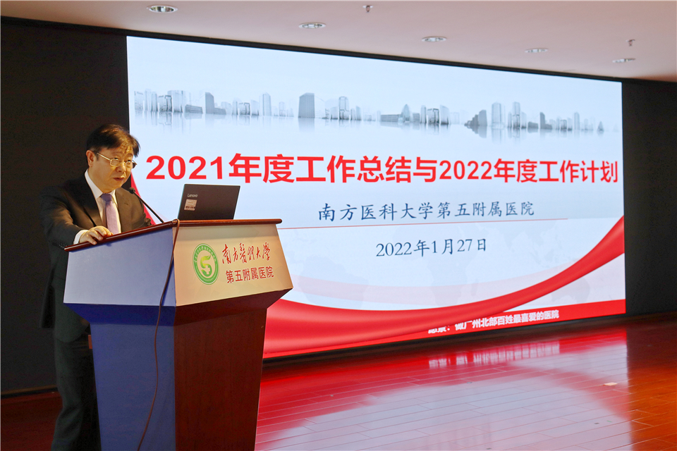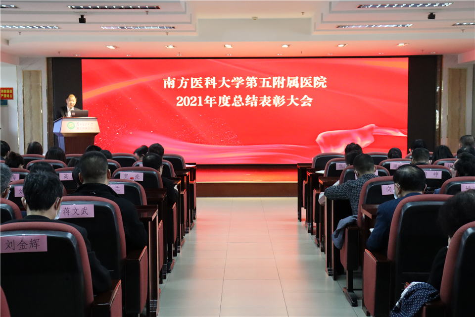 1月27日下午,南医五院召开2021年度工作总结暨表彰大会。全体院领导、管理部门正副职、科室主任、党支部书记、护士长、受表彰人员等参加了会议。党委书记李绍波主持会议。