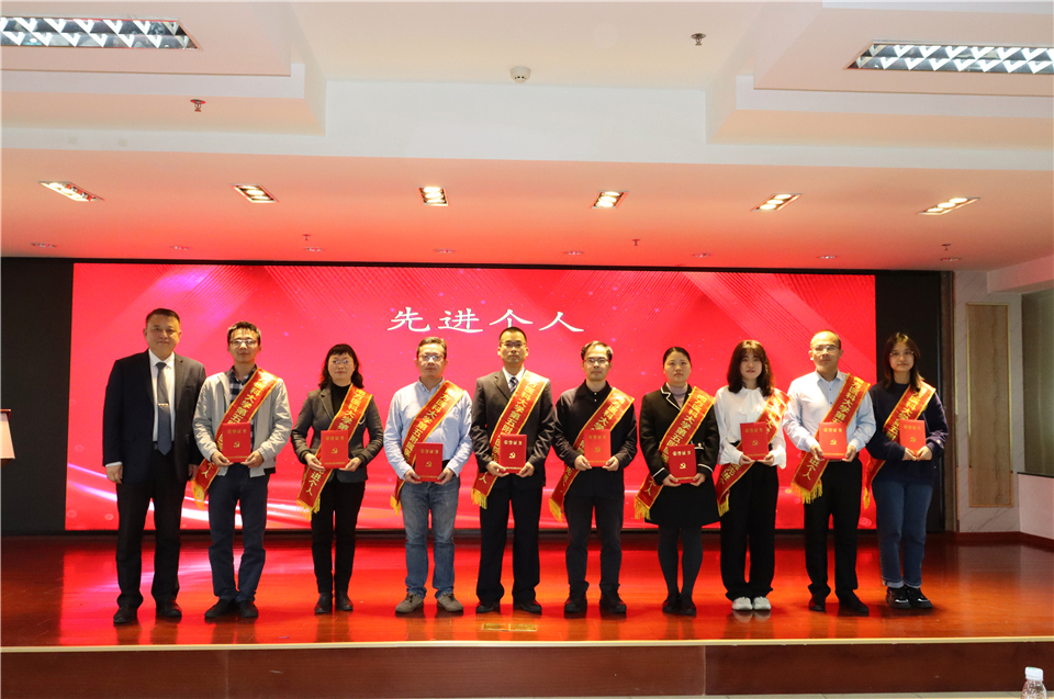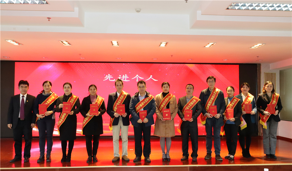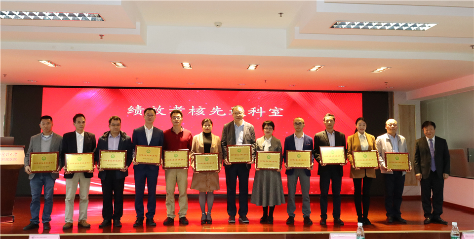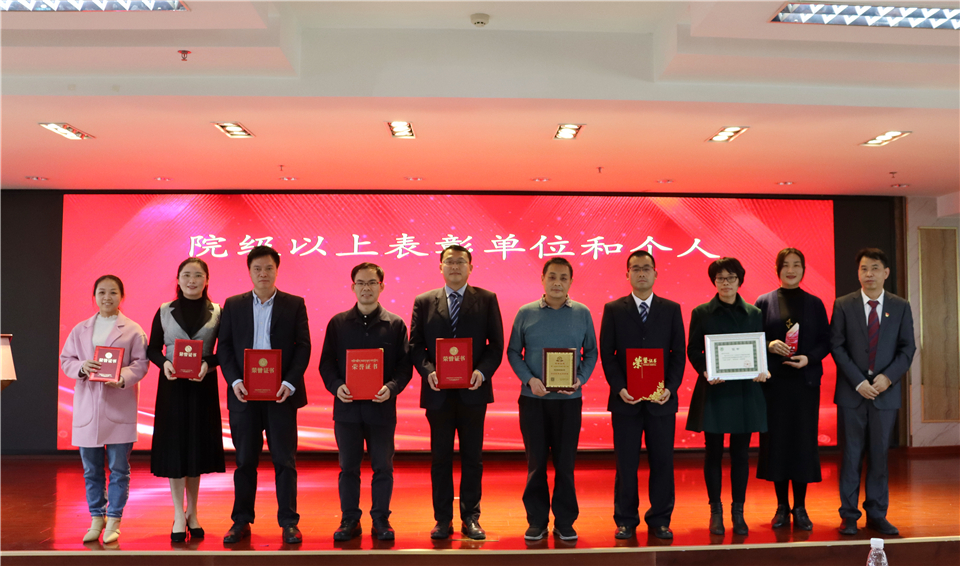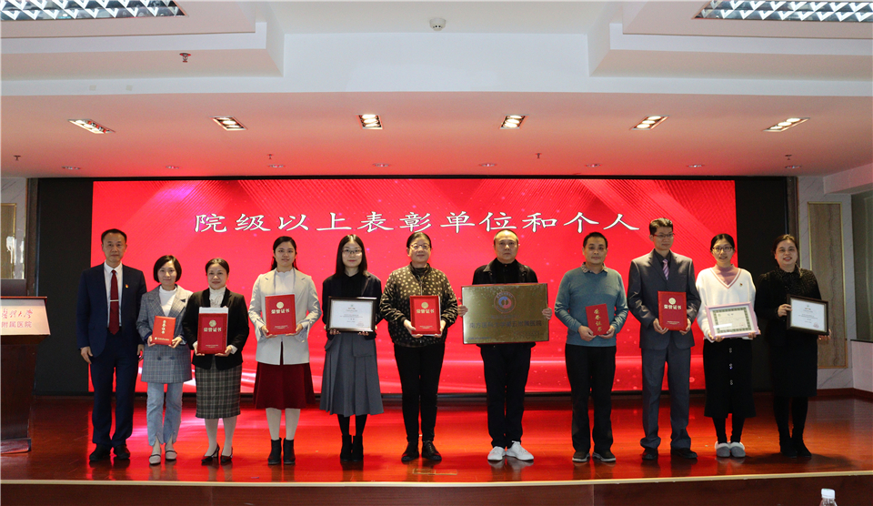 会上,纪委书记邓建希宣读了院级以上表彰通报;党委副书记孙健宣读了十件大事;副院长钱毅宣读了医院先进个人表彰通报;副院长徐晓武宣读了绩效考核先进科室表彰通报;副院长曾方银宣读了在科研工作中表现突出的个人和团队表彰通报;副院长邱小忠宣读了学校和医院工会表彰通报。并现场对获奖个人和集体进行表彰颁奖。