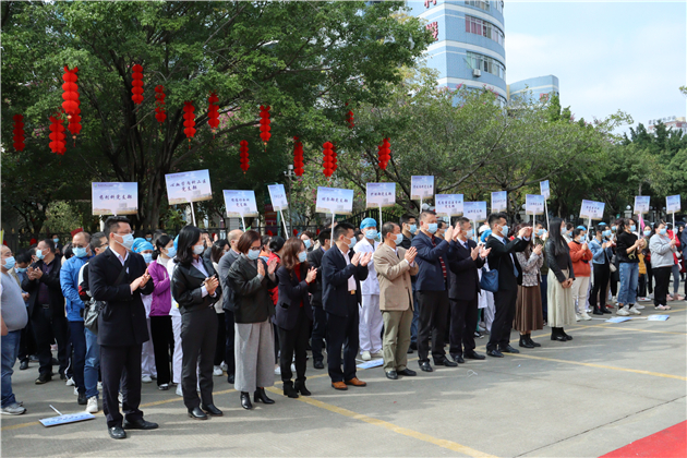 本次系列活动由中国农业银行(广州从化支行)、维肯中英文幼儿园、花漾鎏金艺术文化有限公司与医院共同协办,院领导李绍波、邓建希、孙健、钱毅、徐晓武,以及中国农业银行从化支行行长许可飞、副行长黄昀,广州城建职业学院总会计师苗红卫,维肯中英文幼儿园副园长李倩楠,花漾鎏金艺术文化有限公司总经理李洁芳等参加了开幕式。