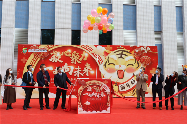 院领导与参会嘉宾共同拉开红绸,放飞气球,正式启动迎新春系列活动。