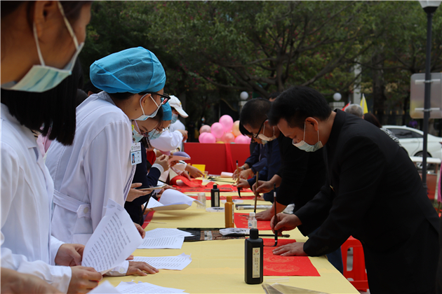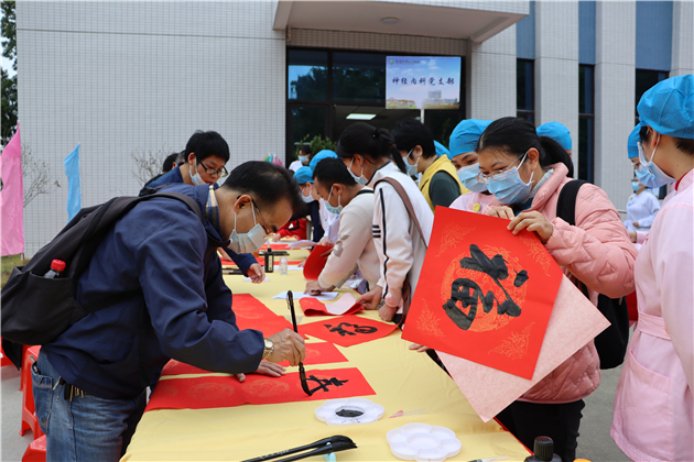 从化区文联还在活动现场开展“齐心抗疫”慰问我院一线医务工作者挥春送福活动,一幅幅吉祥如意的大红春联,散发着春的气息,或风雅有致,或遒劲有力,各种书体跃然纸上。这些写满新春祝福的春联和“福”字,带着浓浓的情谊和年味,为即将到来的春节增添喜庆氛围,让广大教职工感受到无比的暖心。