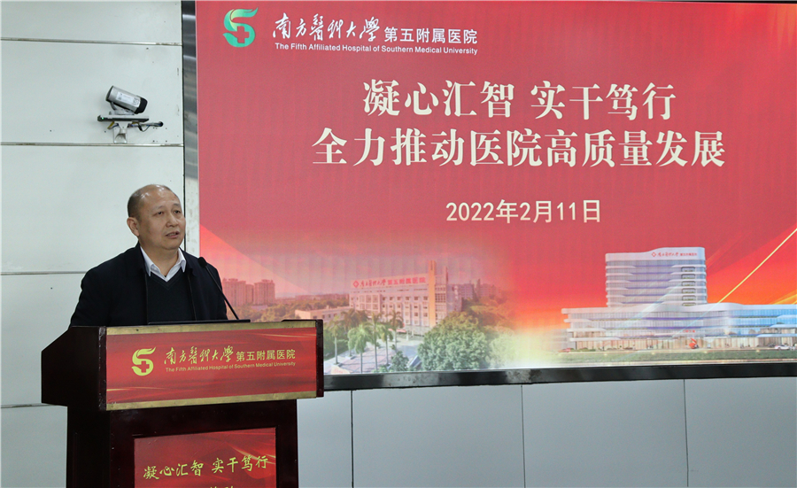 熊梦辉副校长指出,南医五院的“十四五”规划目标清晰、定位准确,对医院实现高质量发展有信心。熊副校长强调,南医五院要立足从化、辐射周边,抓好医院安全管理,为医院发展营造和谐稳定的环境,一是要提高站位,切实增强医院领导班子的凝聚力、谋划力、执行力;二是要凝心聚智,切实提高医疗质量和水平;三是要实干笃行,切实抓好医院安全工作。