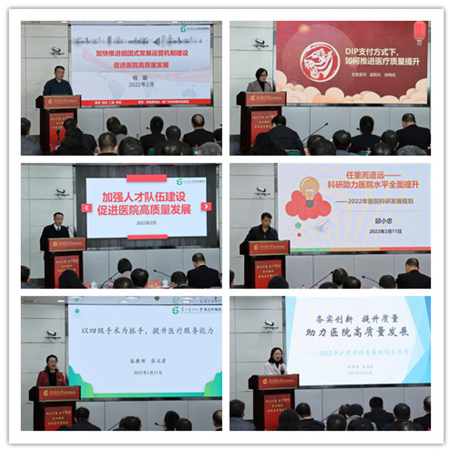 四位分管副院长结合自己分管工作的重点进行了剖析并提出了工作思路和具体工作举措,医教部、护理部负责人代表机关职能管理部门作了专题报告。