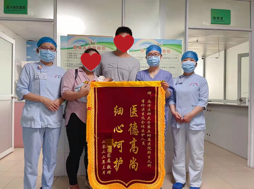 近日,豆豆顺利康复出院,终于能与爸爸妈妈回家团聚了。阿芳夫妇为了表达感谢,专程到新生儿科送锦旗。阿芳哽咽说:“怀孕期间在医生护士的帮助下我学习了一些知识,我知道自己和孩子的情况有多危险,太感谢南医五院新生儿科医生护士们了!这个恩情我没齿难忘。”黄维本握着家属的手说:“治病救娃是我们的本职工作,我们的目标不仅要救活宝宝,而且要让孩子以后生活的有质量,在起跑线上不掉链子。”