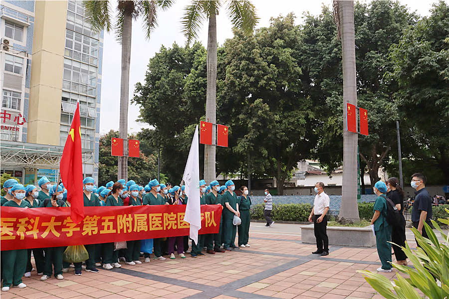 按照广东省卫健委统一部署安排,本轮广州市核酸采集,南方医科大学第五附属医院共派出了2955名医护人员参与采集任务,创下了医院历史记录,也是本轮支援广州防疫最大规模队伍之一。