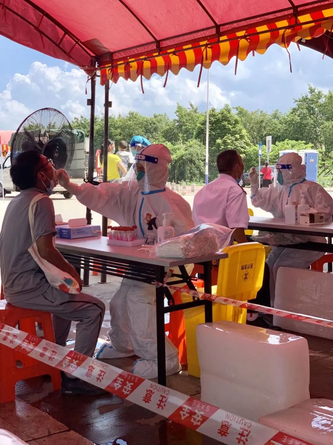 当天,板芙镇共设置16个固定采样点“开门采集”和44个流动采样点“上门采集”,方便群众就近采样。南医五院100名医护人员顶着炎炎烈日,争分夺秒,协同战斗,协助板芙镇高质量完成区域全员核酸检测。该镇党委委员、副镇长周丽端代表板芙镇党委政府向南方医科大学第五附属医院医护人员献上鲜花与感谢信,感谢他们对板芙镇疫情防控工作的支持。