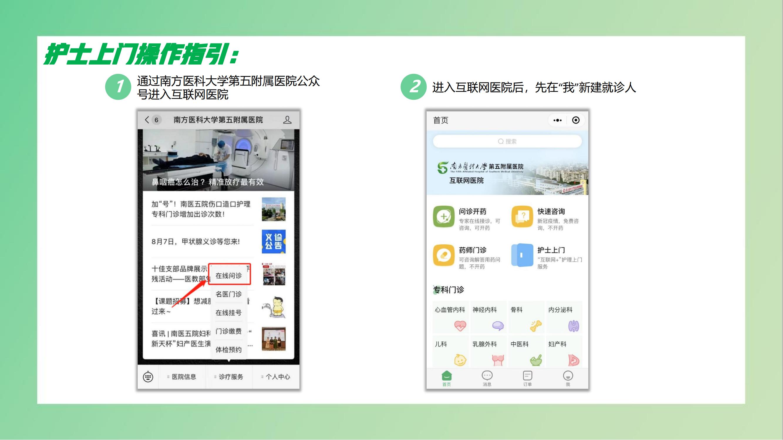 南方医科大学第五附属医院是广州市第二批“互联网+护理服务”试点单位,2022年8月5日起正式开通以病人需求为主导的“互联网+护理服务”,为有需要服务的患者提供安全、规范、有保障的上门护理服务。