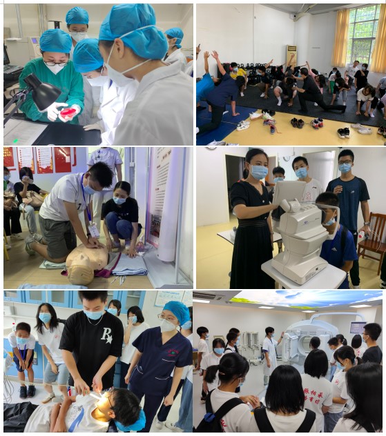 营员们还分别在检验医学科、康复医学科、急诊医学科、眼科、口腔医学中心以及核医学科等医生老师们的带领下,先后学习正确运动,视力保护和刷牙方式等健康生活技巧;以及心肺复苏、海姆立克急救法等急救技能;并参观了核医学科的大型医疗设备,在检验医学科实验室内观察红细胞、白细胞和真菌的镜下结构。在这个过程中,营员们近距离接触医学的世界,感受医学的魅力。
