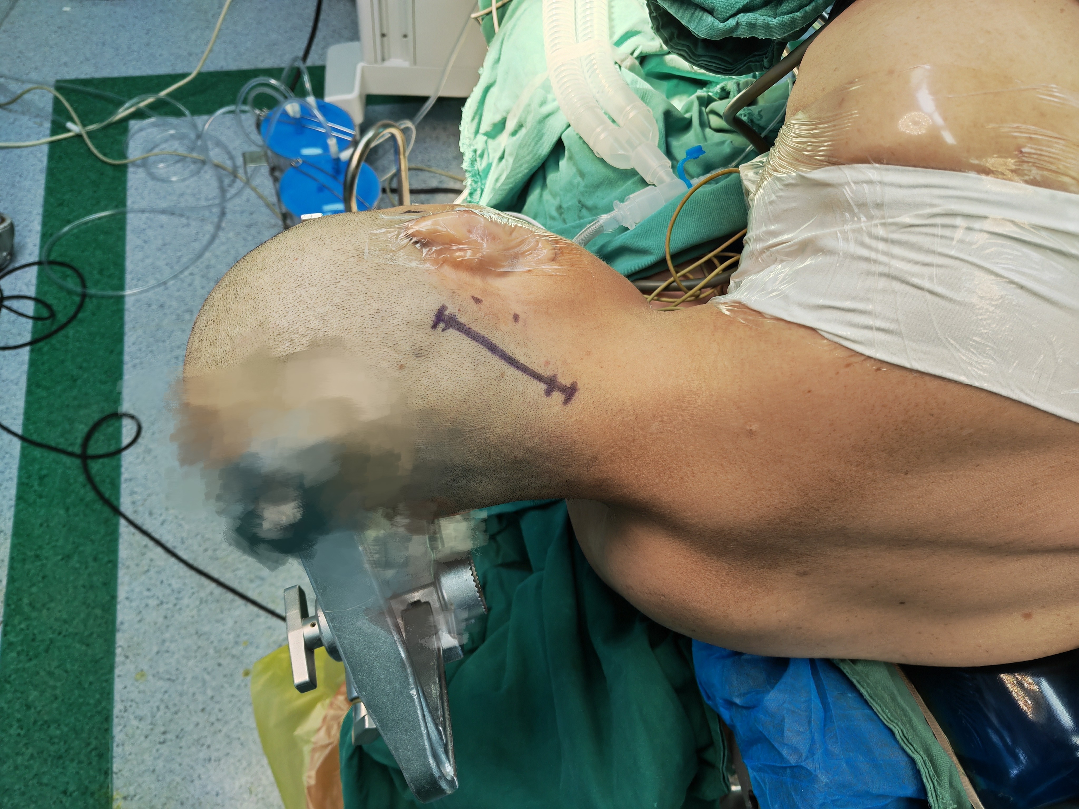 入院后,南方医科大学第五附属医院神经外科主任蒋文武带领医师团队认真评估了其面肌痉挛发生的频率、强度和持续时间,并完善了核磁颅神经血管检查,明确了病因是动脉血管压迫了面神经,并确定了手术方案——右侧面神经微血管减压术。手术中,蒋文武主任为患者采用耳后发际内直切口,术中在显微镜下仔细松解责任动脉后并用专用材料进行隔离。