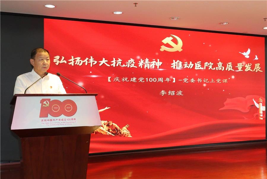 为深入开展学习贯彻习近平总书记在庆祝中国共产党成立100周年庆祝大会上的重要讲话精神,扎实推进党史学习教育走深走实,连日来,医院领导班子成员到所联系点党支部开展讲党史学习教育专题党课活动。 党委书记李绍波讲党课 医院党委书记李绍波给各党支部书记、支部委员、部门科室主任、护士长、党员代表作《弘扬伟大抗疫精...